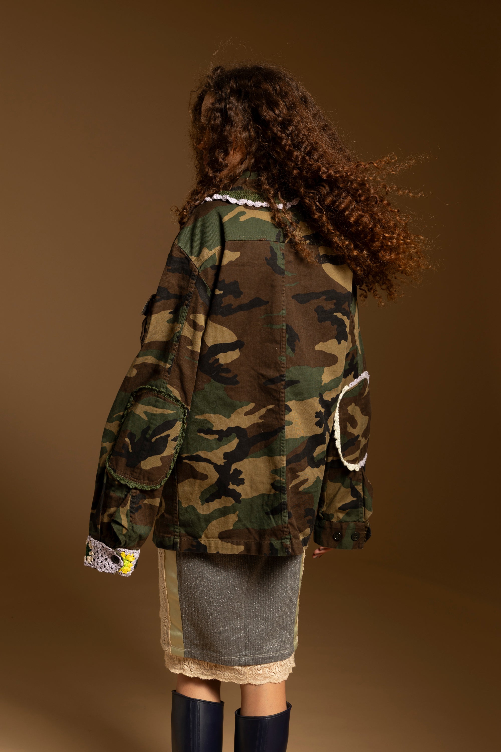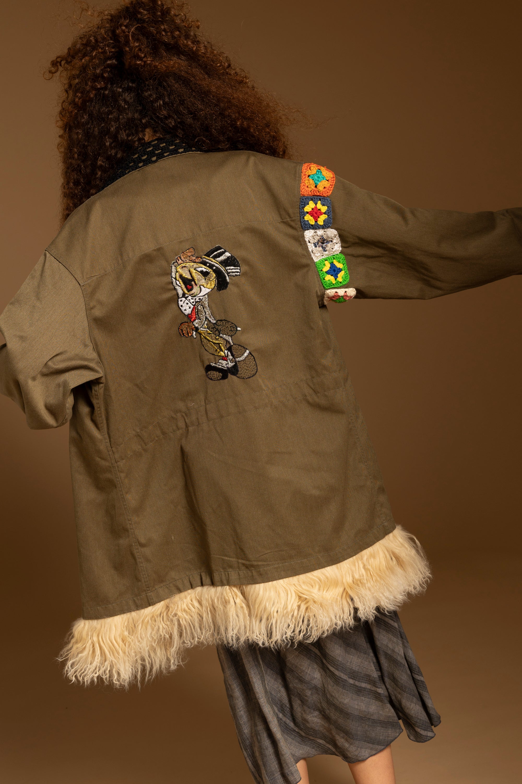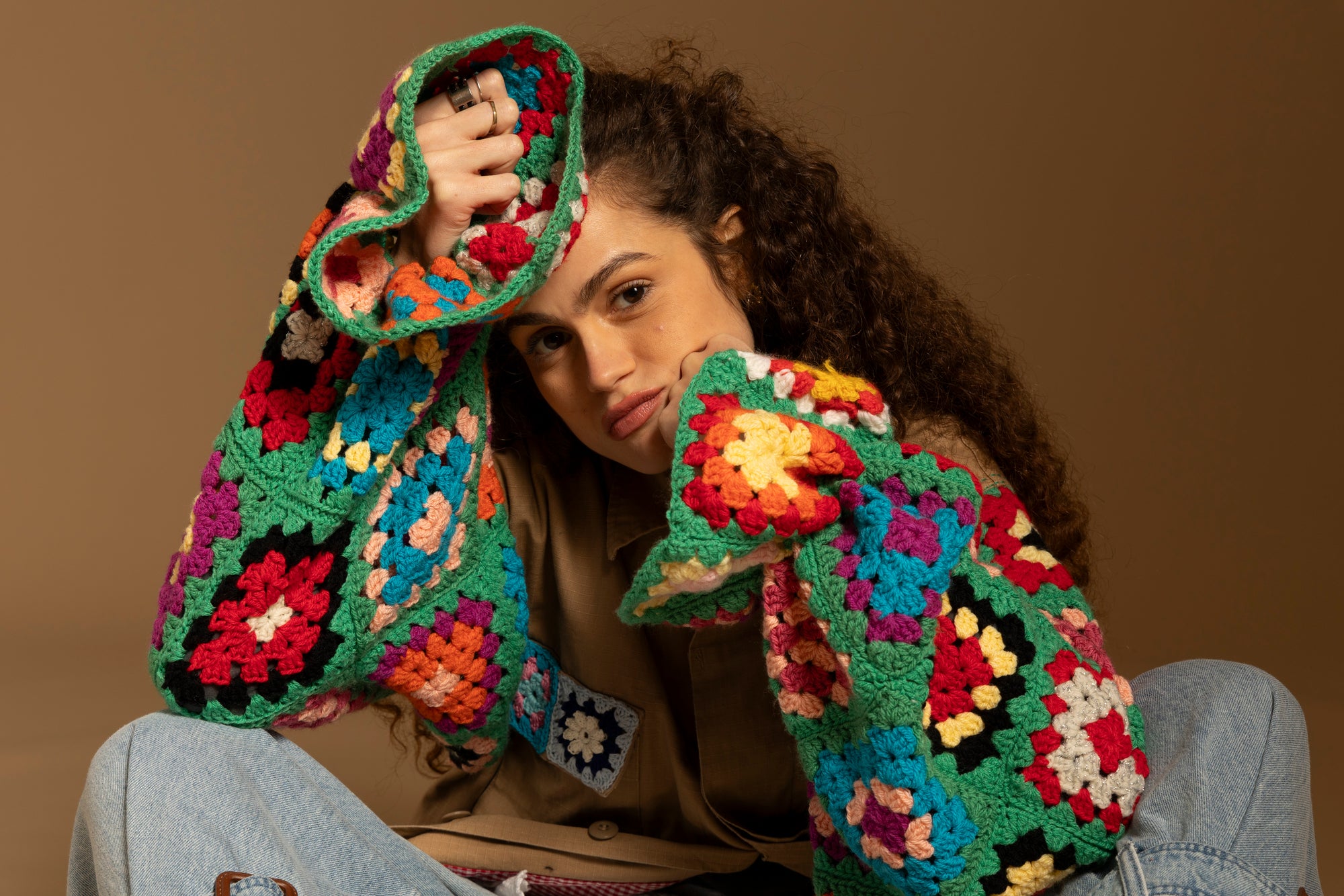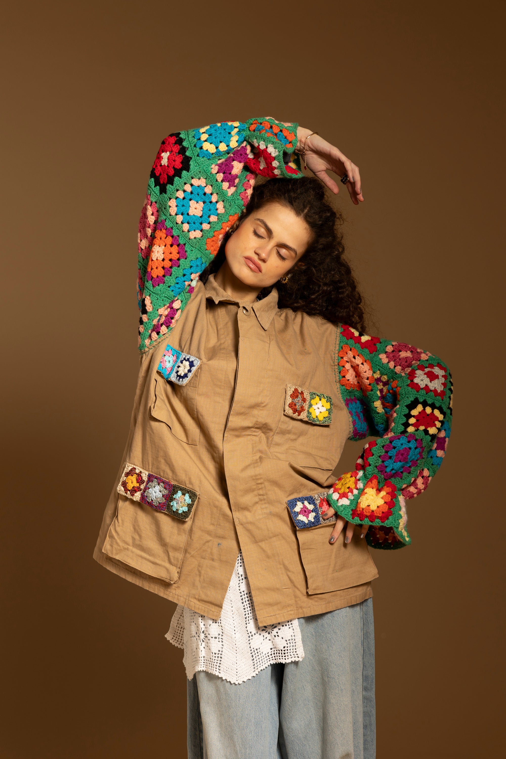Ogni giacca nasce da una selezione accurata nel second-hand e viene trasformata con applicazioni all’uncinetto in 100% lana, realizzate interamente a mano con i filati signature di Almace provenienti da deadstock.