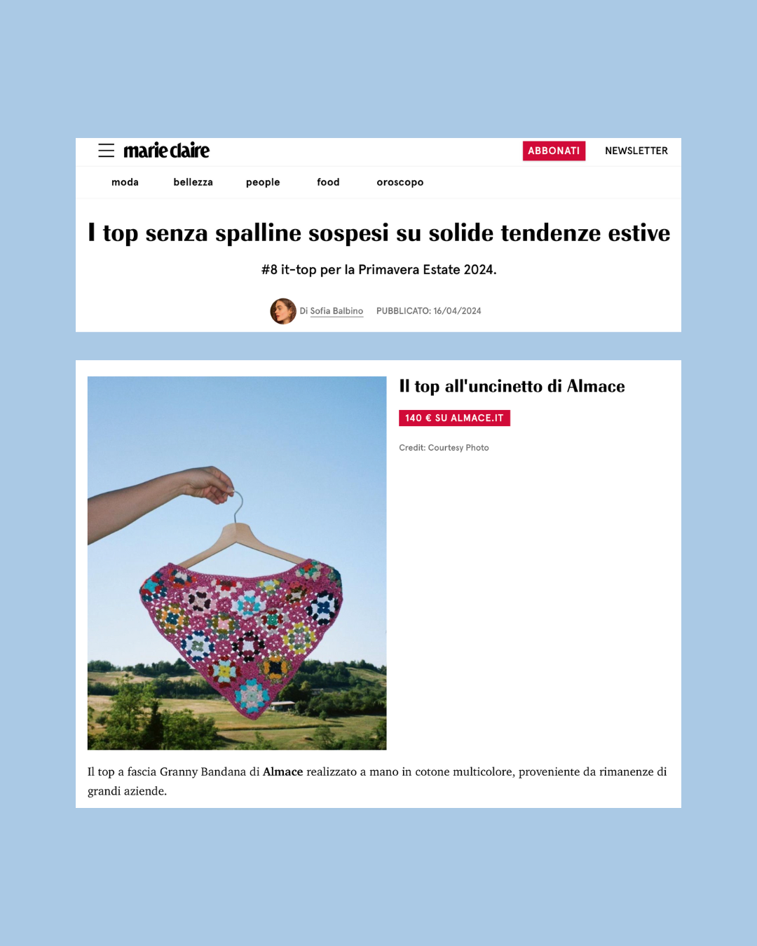 Che si parli di classici modelli bustier da stringere sulla schiena, bandane all'uncinetto, crop top semitrasparenti ridotti all'essenziale e corsetti allungati in pelle che scendono oltre la vita e portano con sé nuove proporzioni, a voi la scelta del prossimo it-top tra questa selezione di #8 modelli click-to-wear.