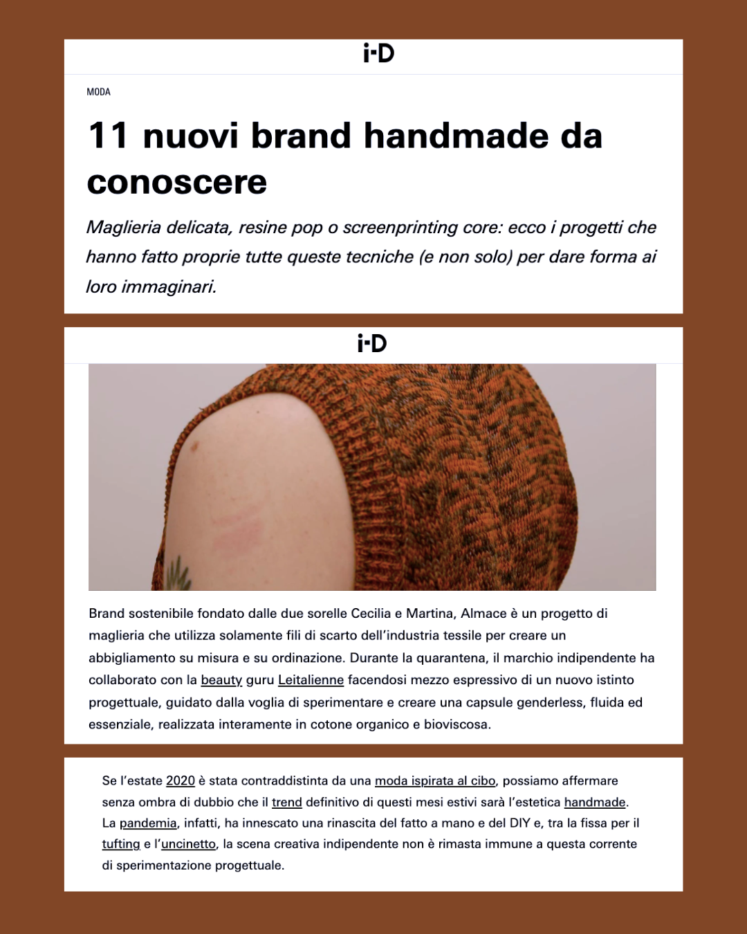 Maglia, ma anche crochet e uncinetto: sono queste le caratteristiche di una serie tutta nuova di brand artigianali, sostenibili e spesso handmade che si sono fatti strada tramite i social promuovendo una nuova idea di moda e rivoluzionando il fashion system.